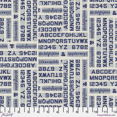 Typography in Indigo from Palette Indigo by Tim Holtz for Freespirit, PWTH295.Indigo