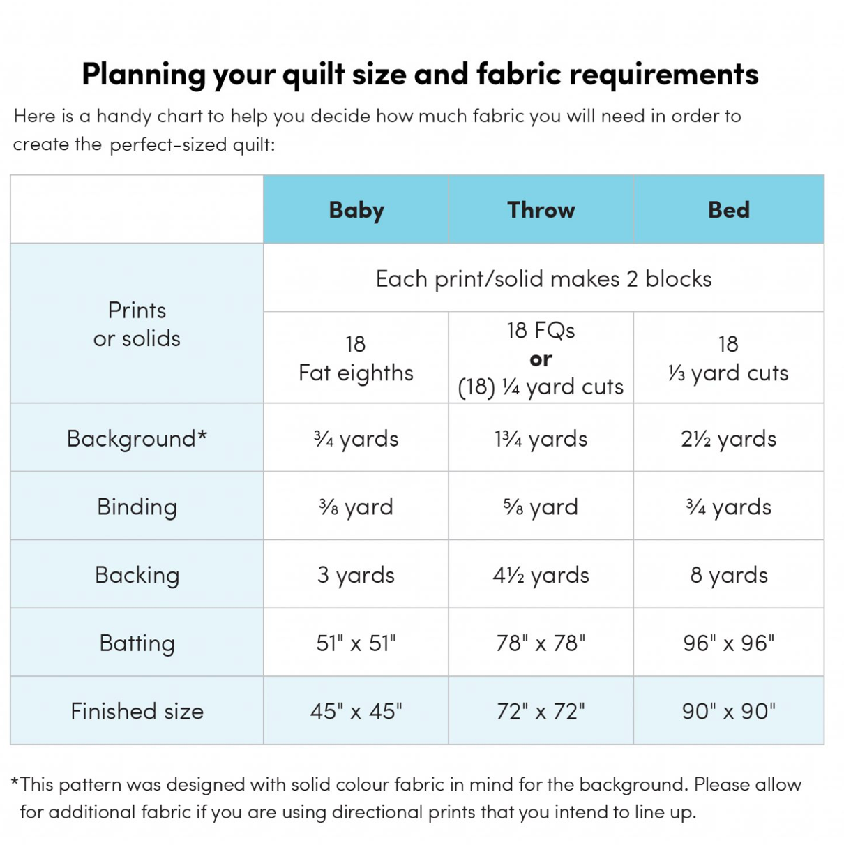 - Finished Sizes: