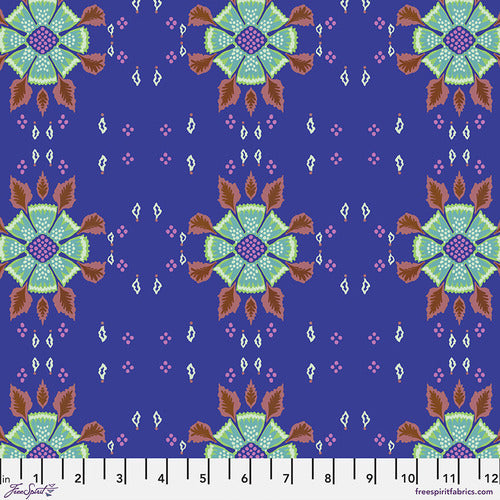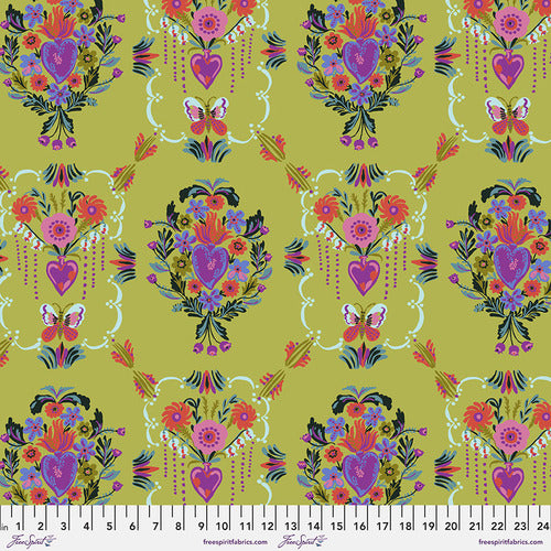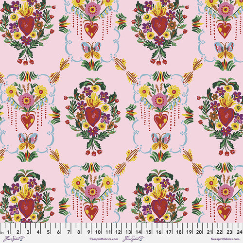 From Nathalie: The collection “Folk Heart” is inspired by my memories I had from my travel in Mexico and Oaxaca in 2020 before pandemic. I visited the wonderful Folk Art museums and was very impressed by the mix of laces, the bright cut paper garland and flowers, the terracotta animals, the hearts motives everywhere, and the colorful textiles and ribbons. I wanted to create joyful patterns with rich, contrasted, colorful images I still had in my mind."