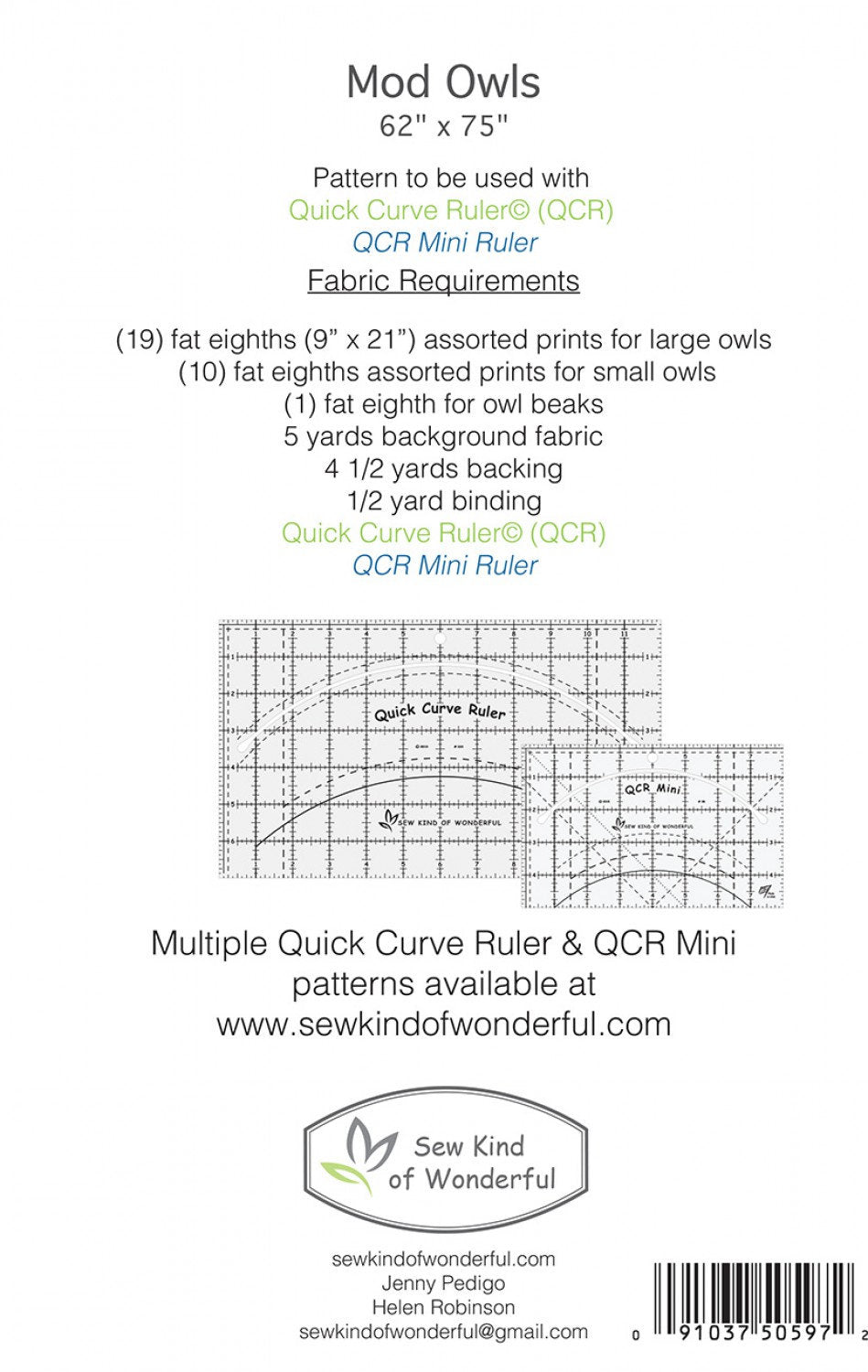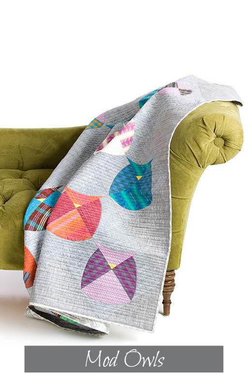 These adorable owls have a very modern look with their clean lines and simplistic design. All curves are pieced seams which use our no stress no pins method for sewing curves.