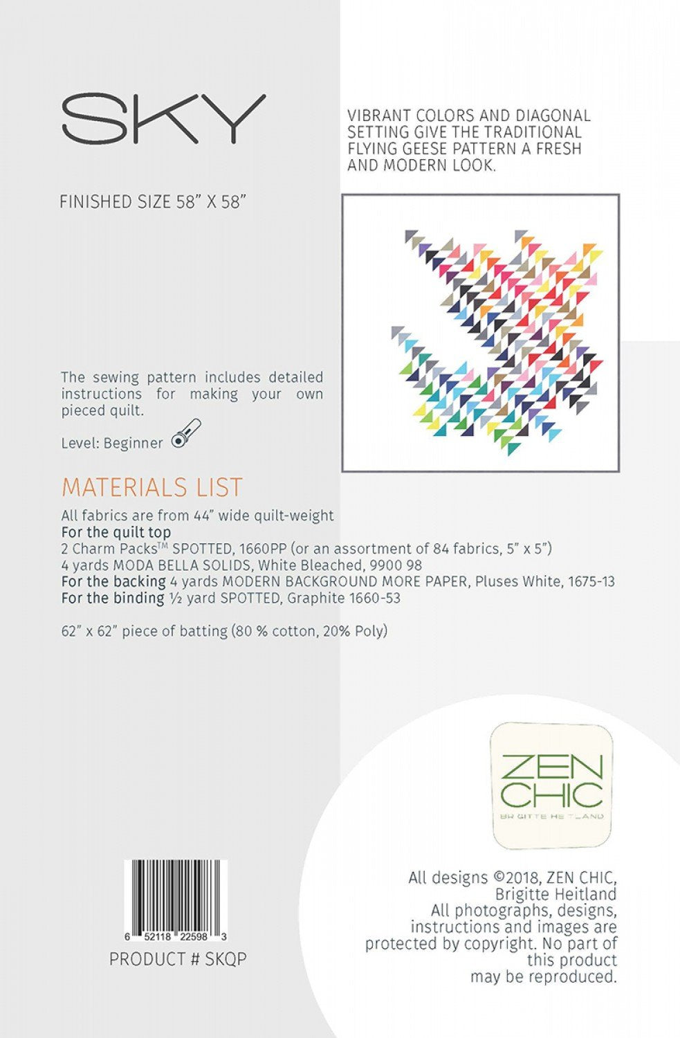 Sky Quilt Pattern by Zen Chic Vibrant colors and diagonal setting give the traditional Flying Geese pattern a fresh and modern look.